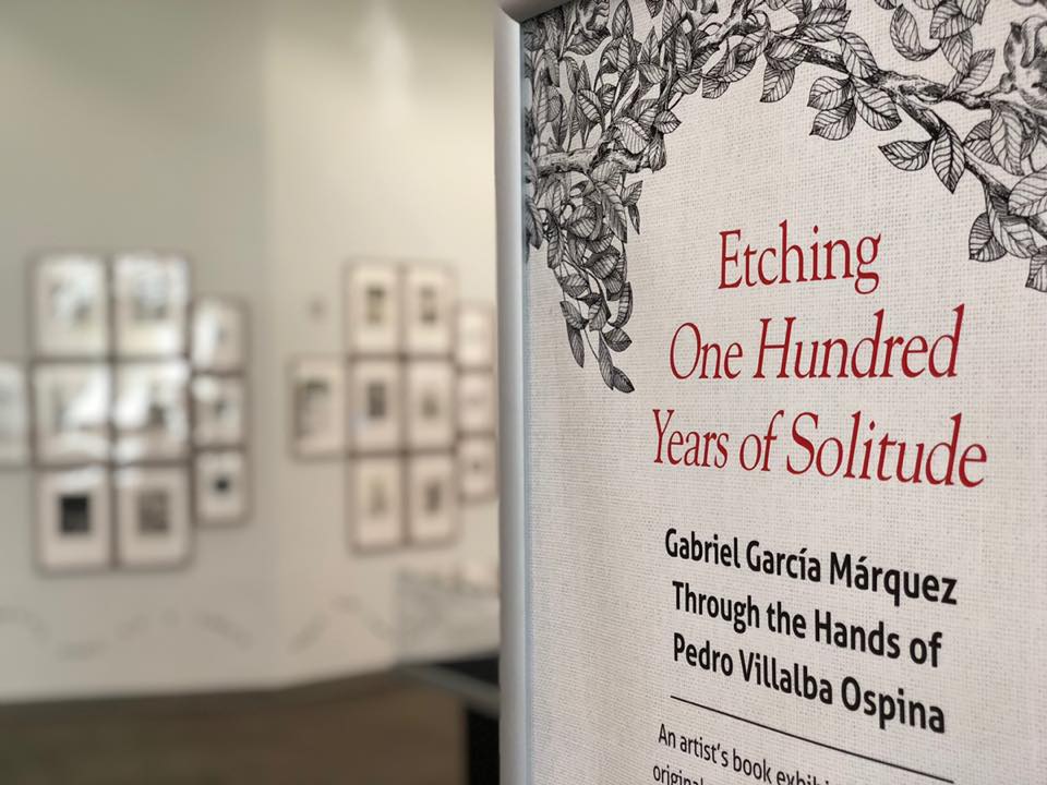 I curated a major exhibition dedicated to the artwork of Pedro Ospina-Villalba and his interpretation through etchings of Gabriel Garcia Marquez’s masterpiece, Cien años de soledad. The exhibition encompassed the first and second floor of the UM Richter Library – both walls and cases. It contained over one hundred framed original works on paper by Villalba, flat cases with the tools of craft, his papers and journals detailing his inspiration, as well as showcasing his exquisite artist book. The exhibition was accompanied by a presentation in the Kislak Center by Professor Omar Vargas and the supporters of the exhibition, and both were titled Etching “One Hundred Years of Solitude.” The exhibition has been mentioned in the Miami Herald.